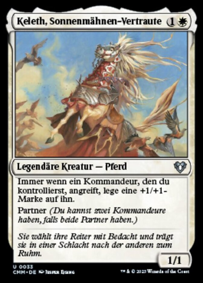 | Rules | Whenever a commander you control attacks, put a +1/+1 counter on it. Partner (You can have two commanders if both have partner.) |