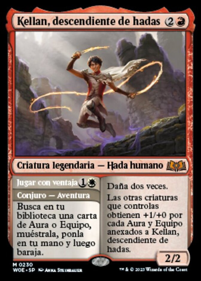 | Rules | Double strike Other creatures you control get +1/+0 for each Aura and Equipment attached to Kellan, the Fae-Blooded. // Search your library for an Aura or Equipment card, reveal it, put it into your hand, then shuffle. |