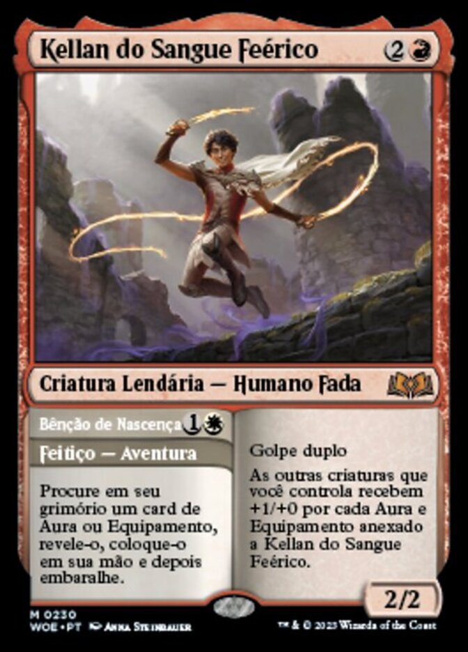 | Rules | Double strike Other creatures you control get +1/+0 for each Aura and Equipment attached to Kellan, the Fae-Blooded. // Search your library for an Aura or Equipment card, reveal it, put it into your hand, then shuffle. |