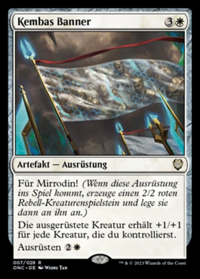 | Rules | For Mirrodin! (When this Equipment enters the battlefield, create a 2/2 red Rebel creature token, then attach this to it.) Equipped creature gets +1/+1 for each creature you control. Equip |
