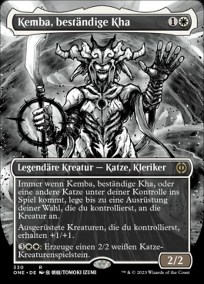 | Rules | Whenever Kemba, Kha Enduring or another Cat enters the battlefield under your control, attach up to one target Equipment you control to that creature. Equipped creatures you control get +1/+1. : Create a 2/2 white Cat creature token. |