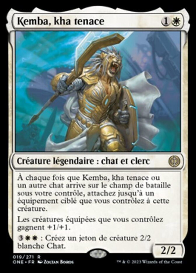 | Rules | Whenever Kemba, Kha Enduring or another Cat enters the battlefield under your control, attach up to one target Equipment you control to that creature. Equipped creatures you control get +1/+1. : Create a 2/2 white Cat creature token. |