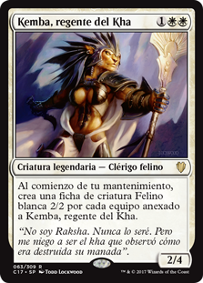 | Rules | At the beginning of your upkeep, create a 2/2 white Cat creature token for each Equipment attached to Kemba, Kha Regent. |