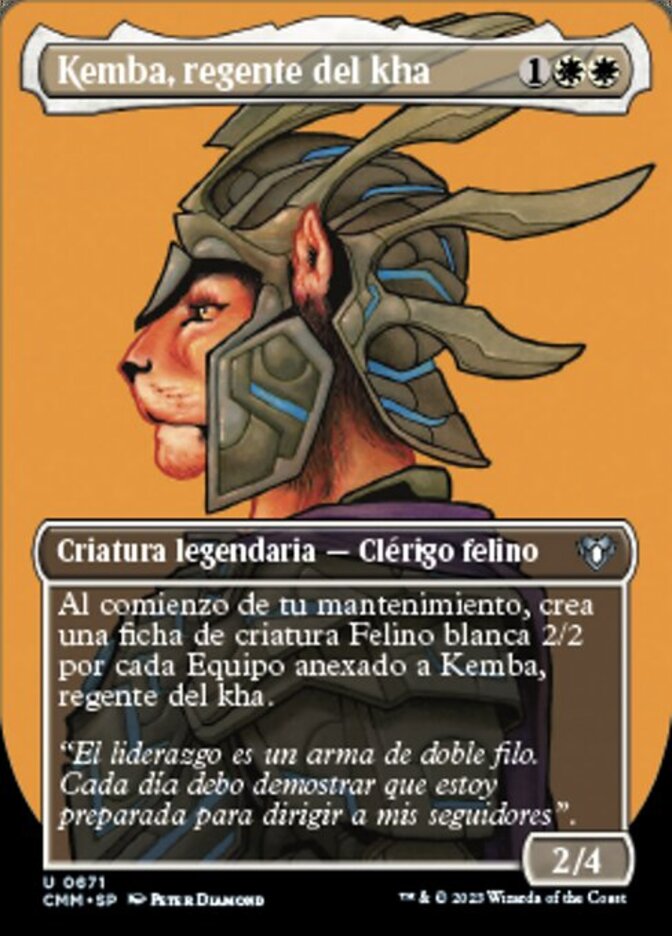 | Rules | At the beginning of your upkeep, create a 2/2 white Cat creature token for each Equipment attached to Kemba, Kha Regent. |