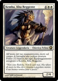 | Rules | At the beginning of your upkeep, create a 2/2 white Cat creature token for each Equipment attached to Kemba, Kha Regent. |