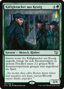 | Rules | Whenever Kessig Cagebreakers attacks, create a 2/2 green Wolf creature token that's tapped and attacking for each creature card in your graveyard. |