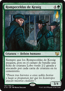 | Rules | Whenever Kessig Cagebreakers attacks, create a 2/2 green Wolf creature token that's tapped and attacking for each creature card in your graveyard. |