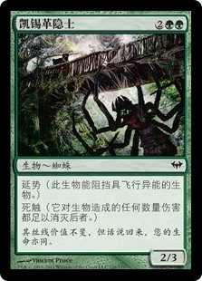 | Rules | Reach (This creature can block creatures with flying.) Deathtouch (Any amount of damage this deals to a creature is enough to destroy it.) |