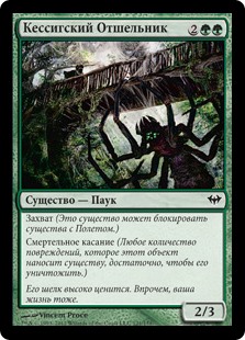 | Rules | Reach (This creature can block creatures with flying.) Deathtouch (Any amount of damage this deals to a creature is enough to destroy it.) |