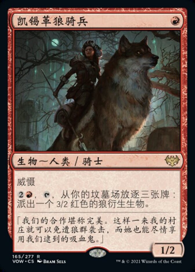 | Rules | Menace , , Exile three cards from your graveyard: Create a 3/2 red Wolf creature token. |