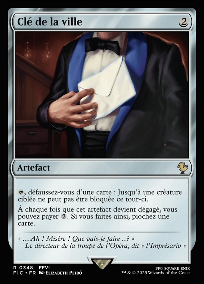 | Rules | , Discard a card: Up to one target creature can't be blocked this turn. Whenever Key to the City becomes untapped, you may pay . If you do, draw a card. |