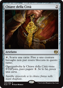 | Rules | , Discard a card: Up to one target creature can't be blocked this turn. Whenever Key to the City becomes untapped, you may pay . If you do, draw a card. |