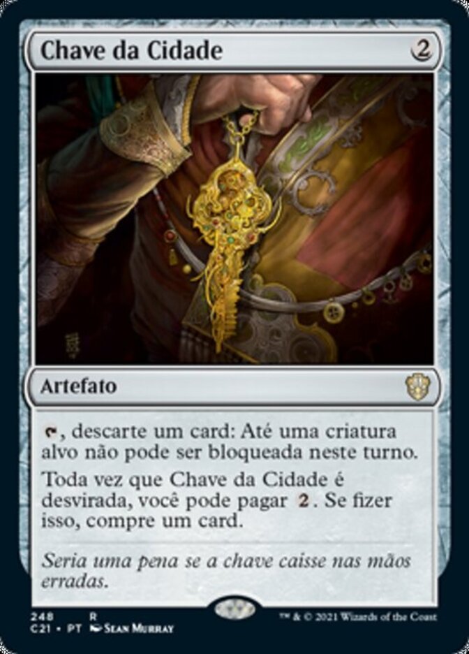 | Rules | , Discard a card: Up to one target creature can't be blocked this turn. Whenever Key to the City becomes untapped, you may pay . If you do, draw a card. |