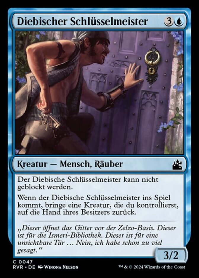 | Rules | Keymaster Rogue can't be blocked. When Keymaster Rogue enters the battlefield, return a creature you control to its owner's hand. |