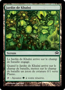 | Rules | Khalni Garden enters the battlefield tapped. When Khalni Garden enters the battlefield, create a 0/1 green Plant creature token. : Add . |