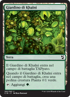 | Rules | Khalni Garden enters the battlefield tapped. When Khalni Garden enters the battlefield, create a 0/1 green Plant creature token. : Add . |