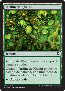| Rules | Khalni Garden enters the battlefield tapped. When Khalni Garden enters the battlefield, create a 0/1 green Plant creature token. : Add . |