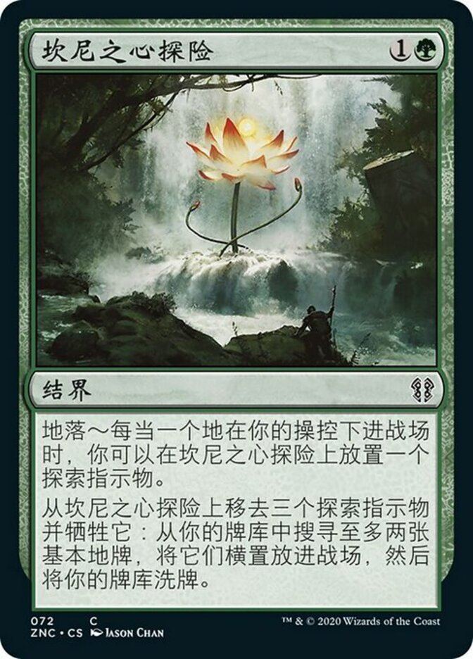 | Rules | Landfall — Whenever a land enters the battlefield under your control, you may put a quest counter on Khalni Heart Expedition. Remove three quest counters from Khalni Heart Expedition and sacrifice it: Search your library for up to two basic land cards, put them onto the battlefield tapped, then shuffle. |