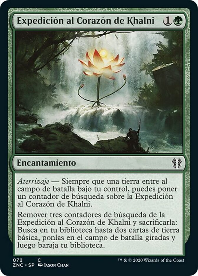 | Rules | Landfall — Whenever a land enters the battlefield under your control, you may put a quest counter on Khalni Heart Expedition. Remove three quest counters from Khalni Heart Expedition and sacrifice it: Search your library for up to two basic land cards, put them onto the battlefield tapped, then shuffle. |