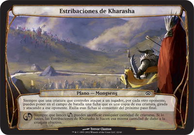 | Rules | Whenever a creature you control attacks a player, for each other opponent, you may create a token that's a copy of that creature, tapped and attacking that opponent. Exile those tokens at the beginning of the next end step. Whenever you roll , you may sacrifice any number of creatures. If you do, Kharasha Foothills deals that much damage to target creature. |