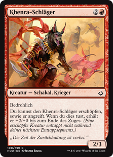 | Rules | Menace You may exert Khenra Scrapper as it attacks. When you do, it gets +2/+0 until end of turn. (An exerted creature won't untap during your next untap step.) |