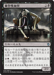 | Rules | Whenever a creature you control with toughness 4 or greater dies, each opponent loses 2 life and you gain 2 life. , Sacrifice another creature: Put a +1/+1 counter on Kheru Bloodsucker. |