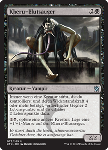 | Rules | Whenever a creature you control with toughness 4 or greater dies, each opponent loses 2 life and you gain 2 life. , Sacrifice another creature: Put a +1/+1 counter on Kheru Bloodsucker. |