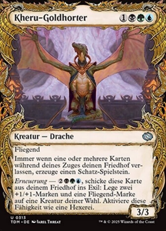 | Rules | Flying Whenever one or more cards leave your graveyard during your turn, create a Treasure token. (It's an artifact with ", Sacrifice this token: Add one mana of any color.") Renew — , Exile this card from your graveyard: Put two +1/+1 counters and a flying counter on target creature. Activate only as a sorcery. |