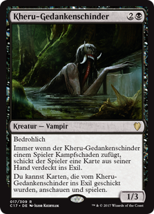 | Rules | Menace Whenever Kheru Mind-Eater deals combat damage to a player, that player exiles a card from their hand face down. You may look at cards exiled with Kheru Mind-Eater, and you may play lands and cast spells from among those cards. |