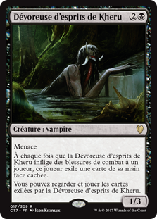 | Rules | Menace Whenever Kheru Mind-Eater deals combat damage to a player, that player exiles a card from their hand face down. You may look at cards exiled with Kheru Mind-Eater, and you may play lands and cast spells from among those cards. |