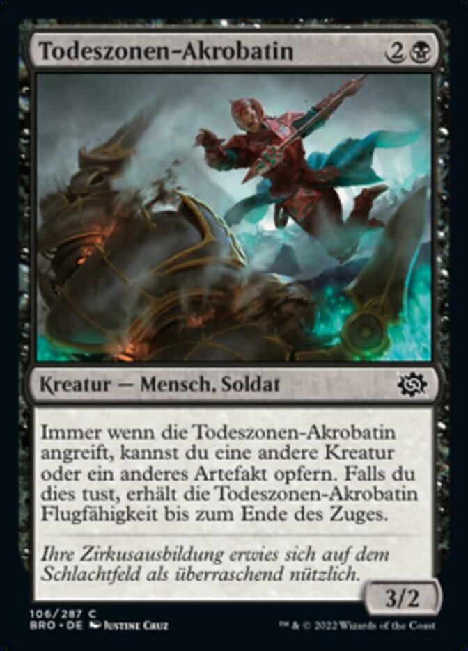 | Rules | Whenever Kill-Zone Acrobat attacks, you may sacrifice another creature or artifact. If you do, Kill-Zone Acrobat gains flying until end of turn. |