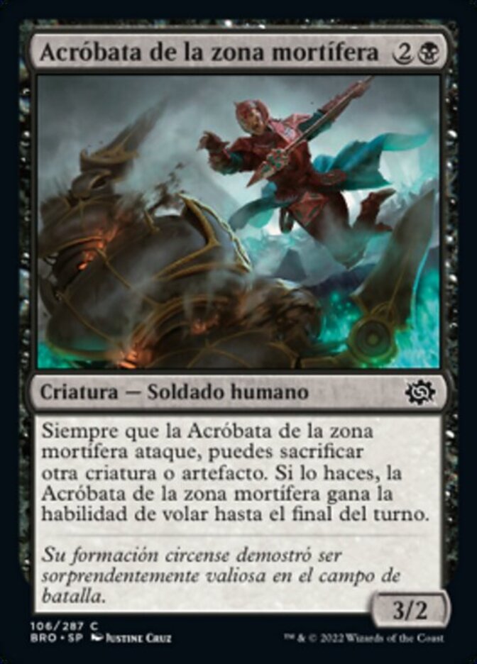 | Rules | Whenever Kill-Zone Acrobat attacks, you may sacrifice another creature or artifact. If you do, Kill-Zone Acrobat gains flying until end of turn. |