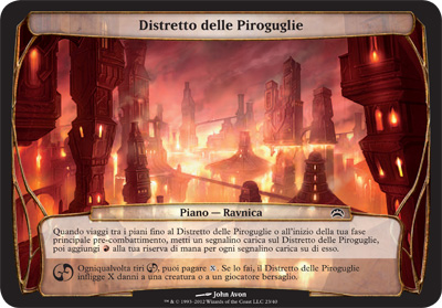 | Rules | When you planeswalk to Kilnspire District or at the beginning of your precombat main phase, put a charge counter on Kilnspire District, then add for each charge counter on it. Whenever you roll , you may pay . If you do, Kilnspire District deals X damage to any target. |