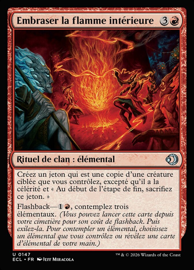 | Rules | Create a token that's a copy of target creature you control, except it has haste and "At the beginning of the end step, sacrifice this token." Flashback—, Behold three Elementals. (You may cast this card from your graveyard for its flashback cost. Then exile it. To behold an Elemental, choose an Elemental you control or reveal an Elemental card from your hand.) |