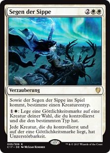 | Rules | As Kindred Boon enters the battlefield, choose a creature type. : Put a divinity counter on target creature you control of the chosen type. Each creature you control with a divinity counter on it has indestructible. |