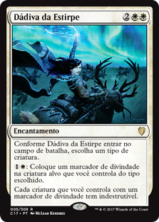 | Rules | As Kindred Boon enters the battlefield, choose a creature type. : Put a divinity counter on target creature you control of the chosen type. Each creature you control with a divinity counter on it has indestructible. |