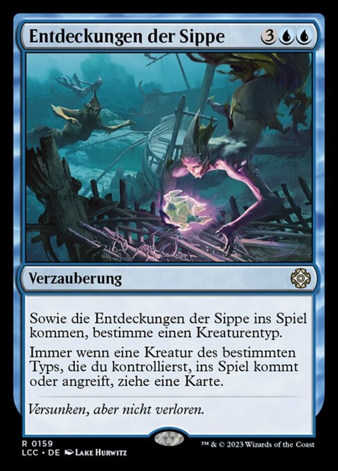 | Rules | As Kindred Discovery enters the battlefield, choose a creature type. Whenever a creature you control of the chosen type enters the battlefield or attacks, draw a card. |