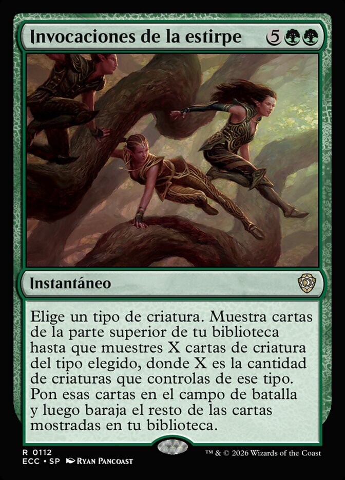 | Rules | Choose a creature type. Reveal cards from the top of your library until you reveal X creature cards of the chosen type, where X is the number of creatures you control of that type. Put those cards onto the battlefield, then shuffle the rest of the revealed cards into your library. |