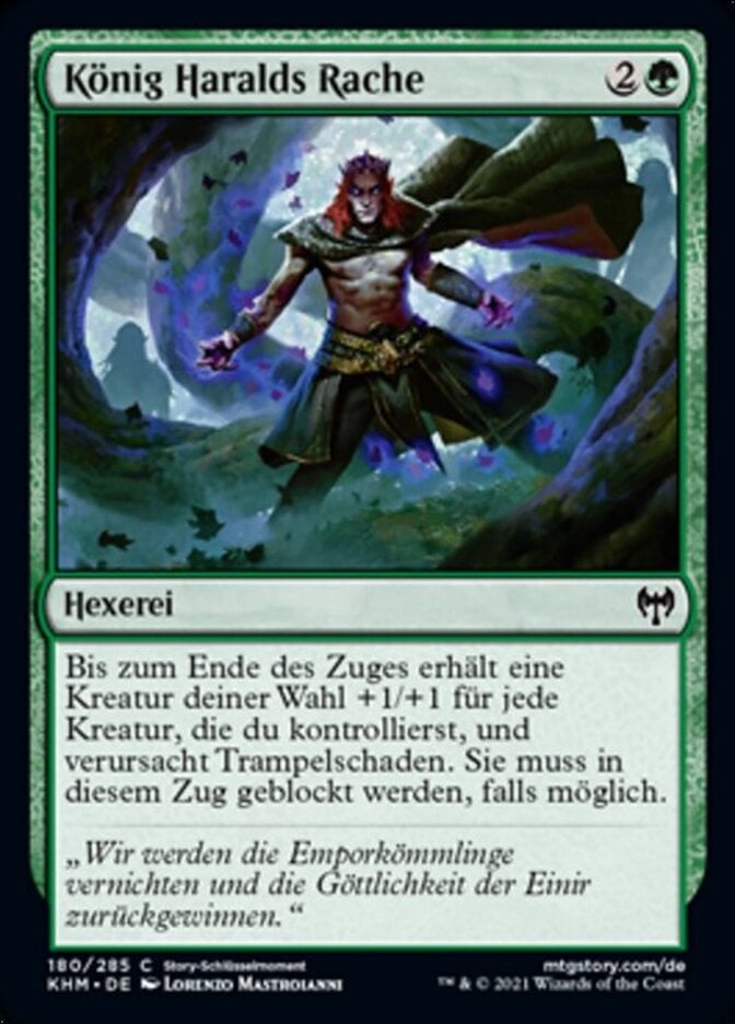 | Rules | Until end of turn, target creature gets +1/+1 for each creature you control and gains trample. It must be blocked this turn if able. |