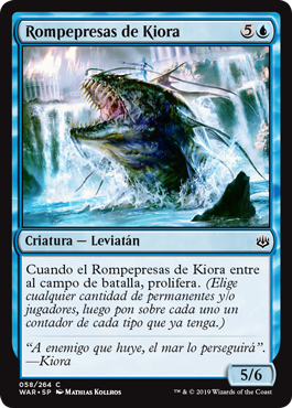 | Rules | When Kiora's Dambreaker enters the battlefield, proliferate. (Choose any number of permanents and/or players, then give each another counter of each kind already there.) |
