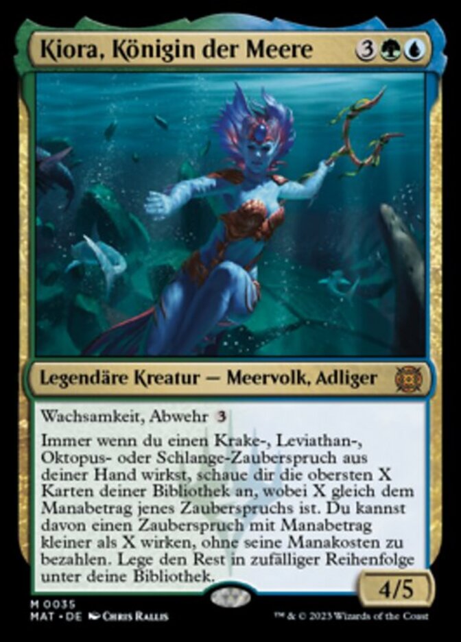 | Rules | Vigilance, ward Whenever you cast a Kraken, Leviathan, Octopus, or Serpent spell from your hand, look at the top X cards of your library, where X is that spell's mana value. You may cast a spell with mana value less than X from among them without paying its mana cost. Put the rest on the bottom of your library in a random order. |