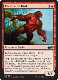 | Rules | Kird Chieftain gets +1/+1 as long as you control a Forest. : Target creature gets +2/+2 and gains trample until end of turn. (It can deal excess combat damage to the player or planeswalker it's attacking.) |