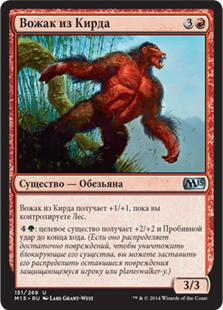 | Rules | Kird Chieftain gets +1/+1 as long as you control a Forest. : Target creature gets +2/+2 and gains trample until end of turn. (It can deal excess combat damage to the player or planeswalker it's attacking.) |