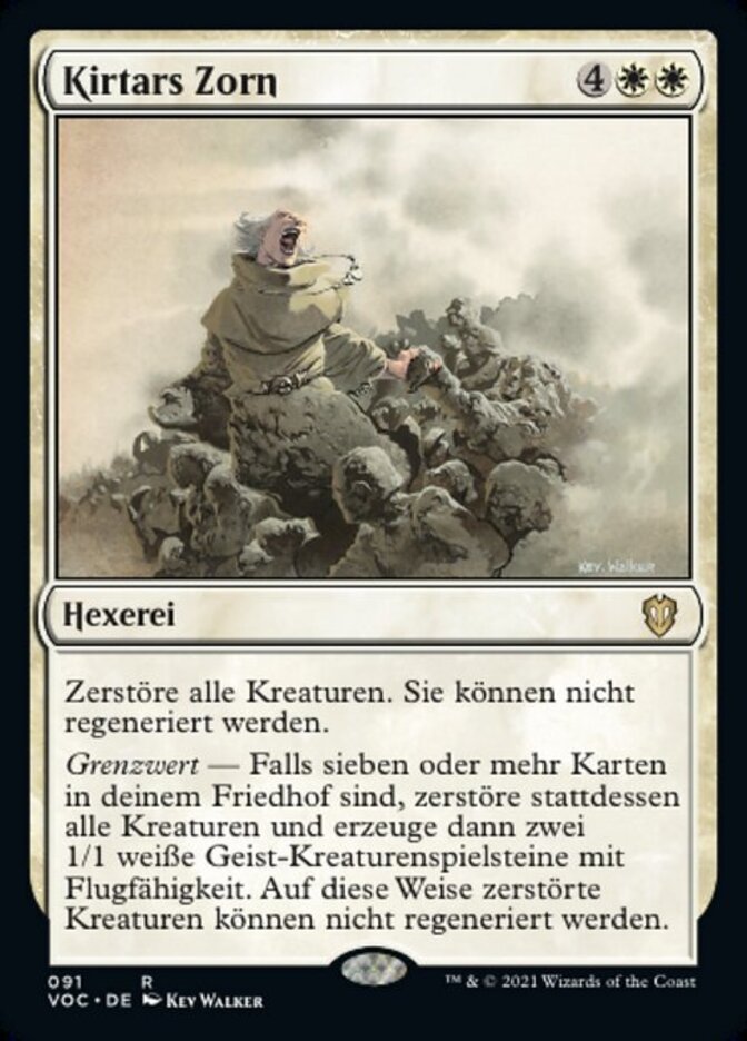| Rules | Destroy all creatures. They can't be regenerated. Threshold — If seven or more cards are in your graveyard, instead destroy all creatures, then create two 1/1 white Spirit creature tokens with flying. Creatures destroyed this way can't be regenerated. |