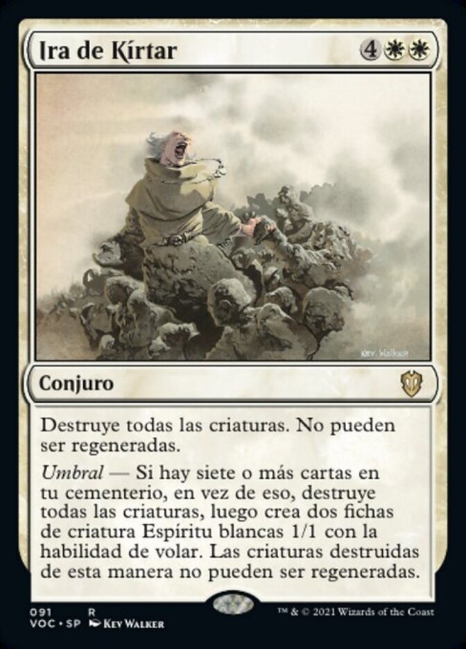 | Rules | Destroy all creatures. They can't be regenerated. Threshold — If seven or more cards are in your graveyard, instead destroy all creatures, then create two 1/1 white Spirit creature tokens with flying. Creatures destroyed this way can't be regenerated. |