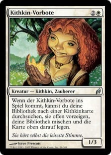 | Rules | When Kithkin Harbinger enters the battlefield, you may search your library for a Kithkin card, reveal it, then shuffle and put that card on top. |