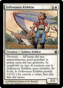| Rules | Kinship — At the beginning of your upkeep, you may look at the top card of your library. If it shares a creature type with Kithkin Zephyrnaut, you may reveal it. If you do, Kithkin Zephyrnaut gets +2/+2 and gains flying and vigilance until end of turn. |