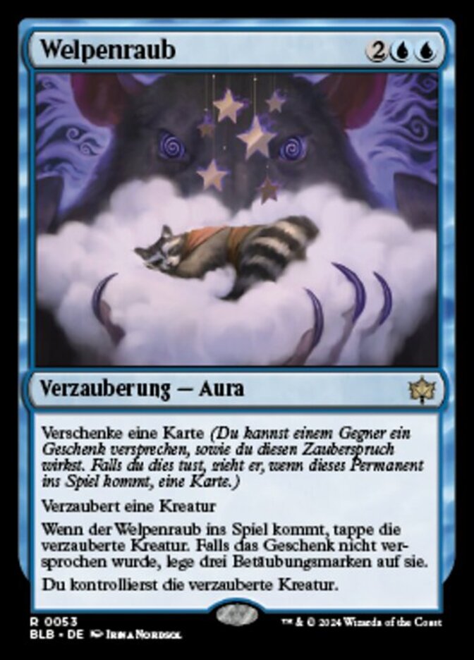 | Rules | Gift a card (You may promise an opponent a gift as you cast this spell. If you do, when it enters, they draw a card.) Enchant creature When Kitnap enters, tap enchanted creature. If the gift wasn't promised, put three stun counters on it. You control enchanted creature. |