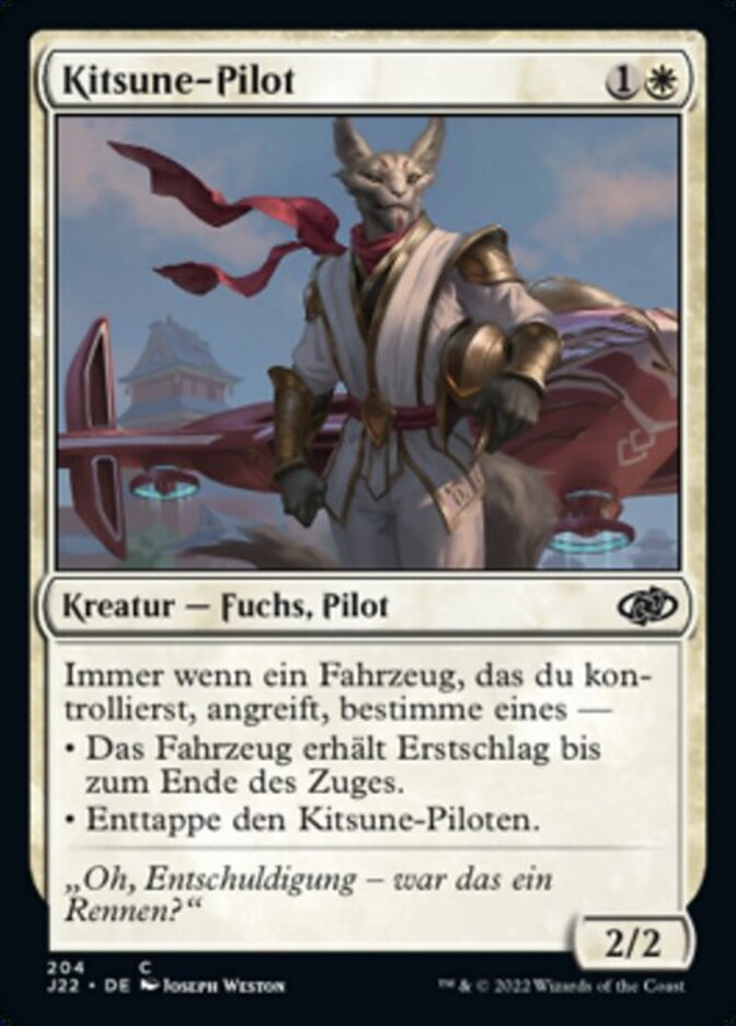 | Rules | Whenever a Vehicle you control attacks, choose one — • That Vehicle gains first strike until end of turn. • Untap Kitsune Ace. |