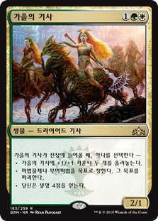 | Rules | When Knight of Autumn enters the battlefield, choose one — • Put two +1/+1 counters on Knight of Autumn. • Destroy target artifact or enchantment. • You gain 4 life. |